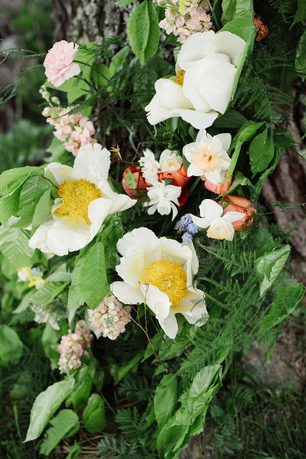 Styled wedding photoshoot in Stowe, VT, using local May flowers plus some shipped from afar, for creative luxury designs. Photographed by Julia Luckett Photography at Trapp Family Lodge.
